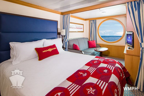 Zariadenie kajút: dvojlôžková queen posteľ (matrace Posturepedic Sealy, bielizeň z egyptskej bavlny), skriňa, kúpeľňa so sprchou, vaňou a WC, sušič na vlasy, kozmetika H20+ spa (šampón, kondicionér a telové maslo), obývacia časť so sofa a stolíkom, oddeliteľná závesom, 22 palcová plochá Tv, bezpečnostná schránka, telefón s priamou linkou, zrkadlo, regulovateľná klimatizácia.