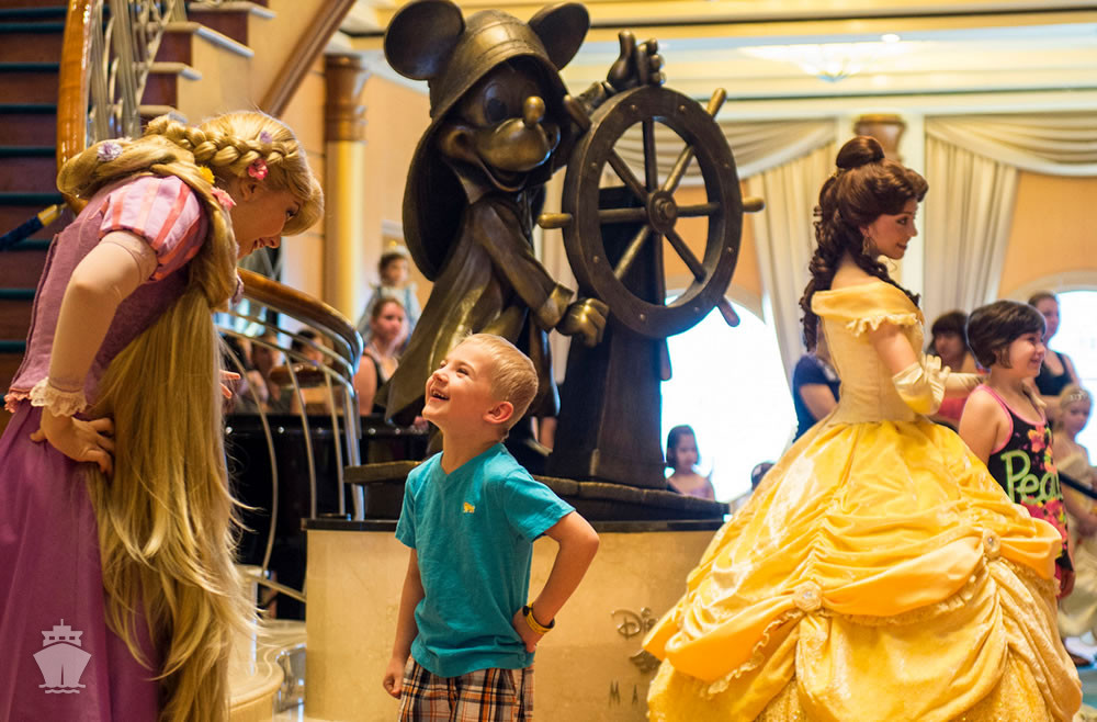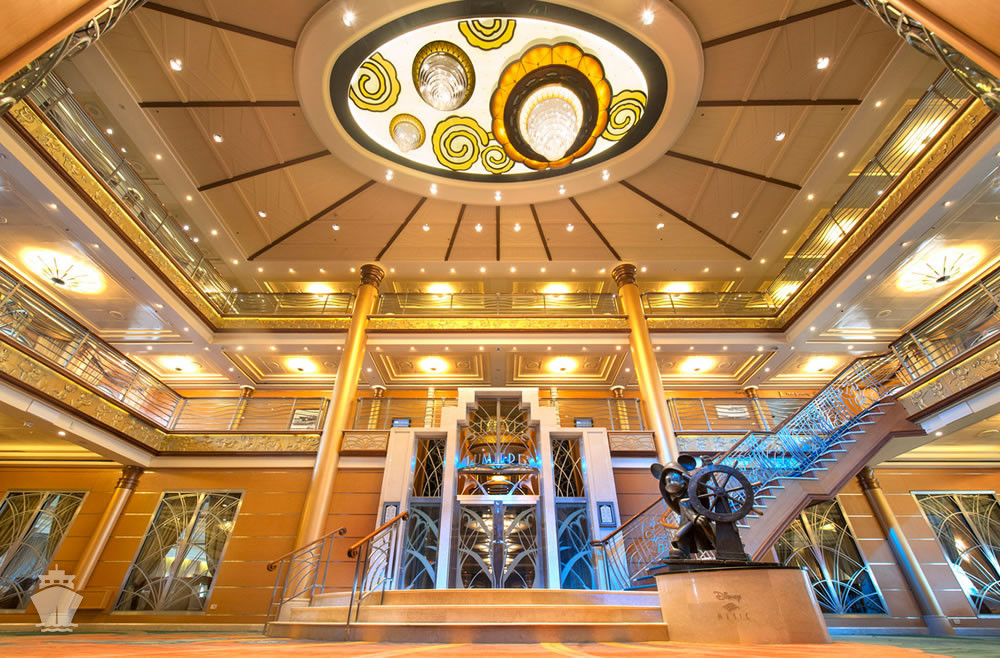 - Magic’s Atrium (centrálna časť lode, cez 3 paluby, s bronzovou sochou “Helmsman Mickey”)