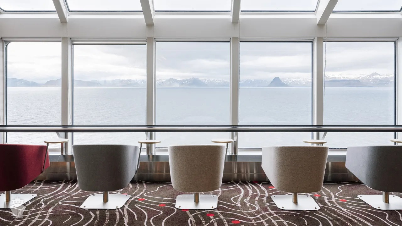 Úžasná scenéria sa odráža v bohatom a pohodlnom dizajne interiéru. Škandinávske prírodné materiály, ako žula, dub, breza a vlna, boli použité na vytvorenie štýlových kajút a verejných priestorov. Všetky kajuty sú vonkajšie, pričom 50 % má vlastný balkón, a apartmány na korme majú súkromné vonkajšie vírivky s nádherným výhľadom.