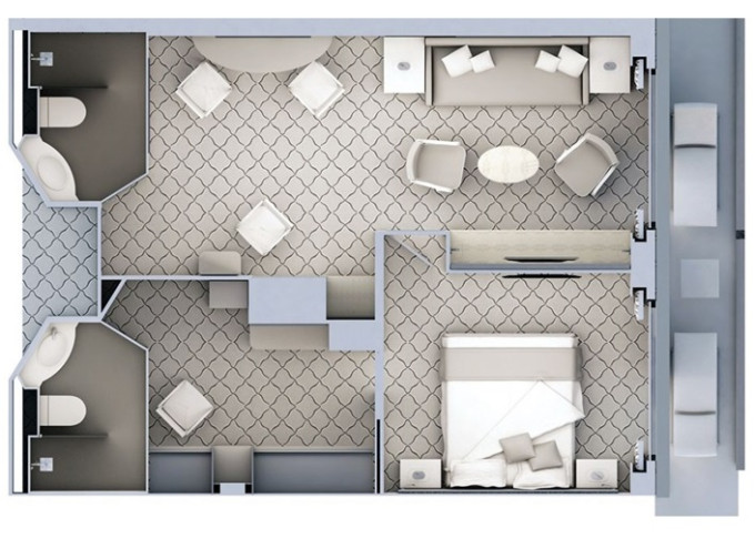 | R2 - Royal Suite 2 96 m² (vrátane 2 balkónov 16,5 m² spolu). 6. paluba. Max 6 osôb. | 116 800 € 116 800 € za osobu |