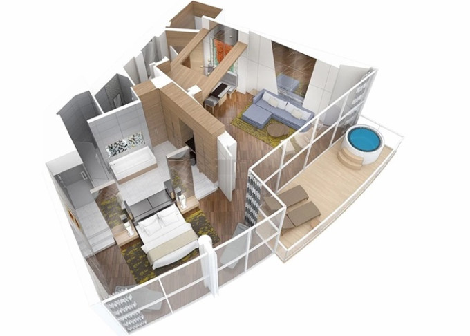| L1 - Crown Loft Suite s balkónom 68 m² + balkón 13 m². 2-podlažný apartmán. 17. paluba. Max 4 osoby. Výhody Royal Suite Sky Class. | 4 826 € 2 413 € za osobu | ||