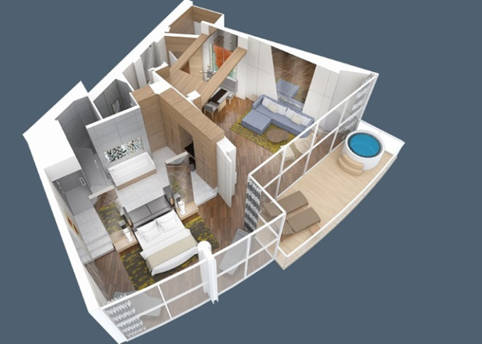 | A3 - Spacious AquaTheater Suite s balkónom od 30 m² + balkón od 33 m². Max 4 osoby. Výhody Royal Suite Sky Class. | 5 210 € 5 210 € za osobu |
