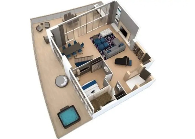 | A1 - Suite AquaTheater Spacious / 2 spálne 76 m² + balkón 72 m². 8. paluba. Max 8 osôb. Výhody Royal Suite Star Class. | 10 168 € 10 168 € za osobu |