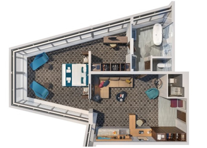 | A1 - Suite AquaTheater Spacious / 2 spálne 76 m² + balkón 72 m². 8. paluba. Max 8 osôb. Výhody Royal Suite Star Class. | 10 294 € 5 147 € za osobu |