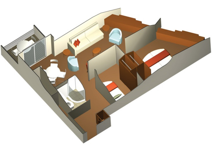 | S1 - Sky Suite 28 m² + balkón 7 m². 6. až 12. paluba. Max 4 osoby. Výhody Suite The Retreat. | 13 740 € 13 740 € za osobu |