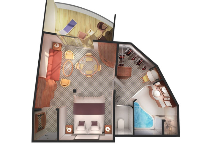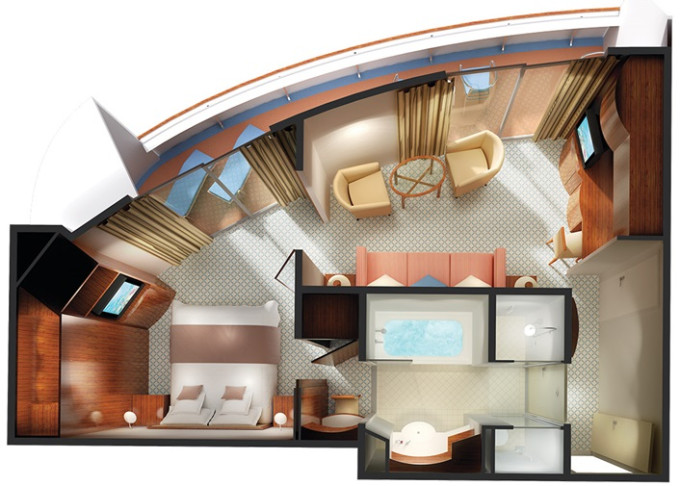 | SA - Owners Suite 76 m² / balkón 23 m². Vírivka. 11. paluba - vpredu. Max 4 osoby. Výhody Suite. | 33 846 € 16 923 € za osobu |