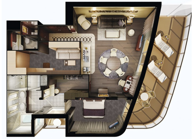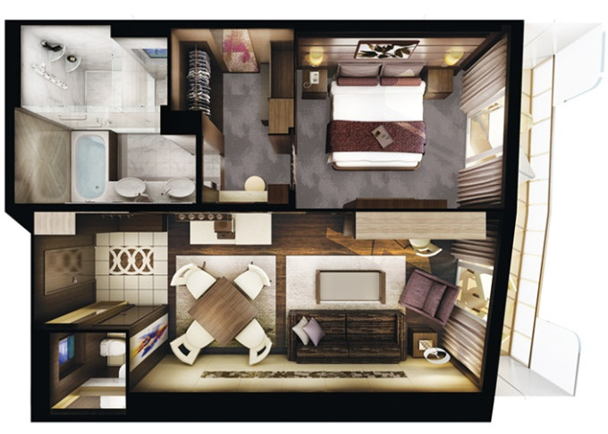 | H2 - The Haven Deluxe Owner's Suite 121 m² / balkón 36 m². 17,18. paluba vpredu. Max 6 osôb. Výhody The Haven. | 16 418 € 8 209 € za osobu |