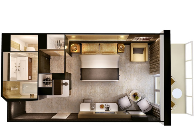 | T1 - Vnútorná kajuta Studio Single 9 m². 10. až 12. paluba - vpredu. Max 1 osoba. | 2 494 € 1 247 € za osobu | ||