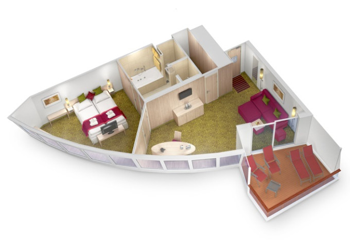 | SX - Suite Panorama Deluxe PREMIUM 42 m² + balkón 12 m². Vírivka. 12. paluba. Max 4 osoby. Cenový model Premium + výhody Suite. | 15 160 € 7 580 € za osobu |