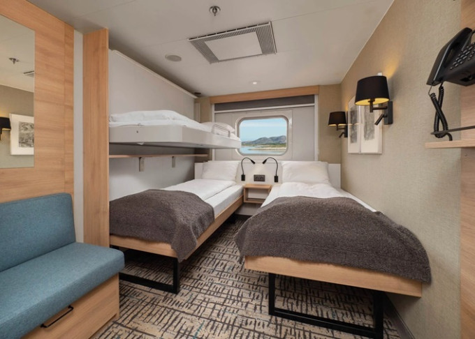 | O3 - Vonkajšia kajuta Polar 11 m². Neotvárateľné okno / môže byť obmedzený výhľad. Tv. Horná a stredná paluba. Max 3 osoby. | 5 634 € 2 817 € za osobu | ||