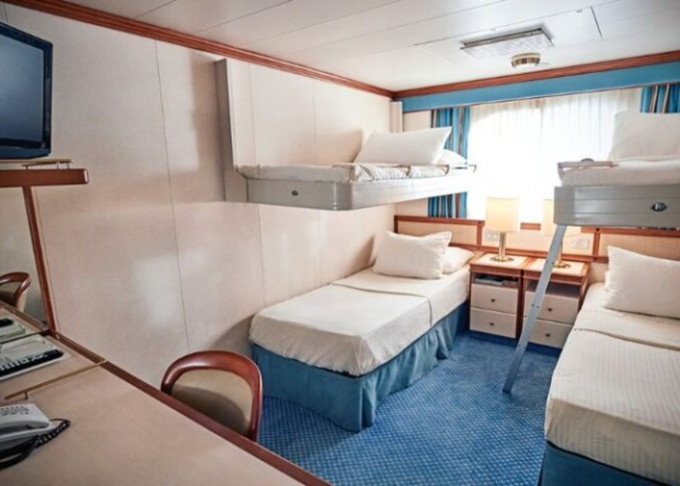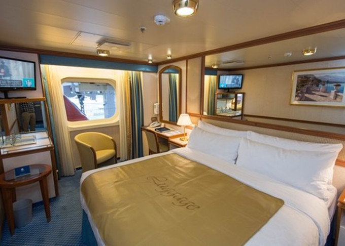 OV - Vonkajšia kajuta / obmedzený výhľad 16,5 m². Neotvárateľné okno s obmedzeným výhľadom. Max 2-4 osoby (2 horné lôžka). 2 486 € 1 243 € za osobu