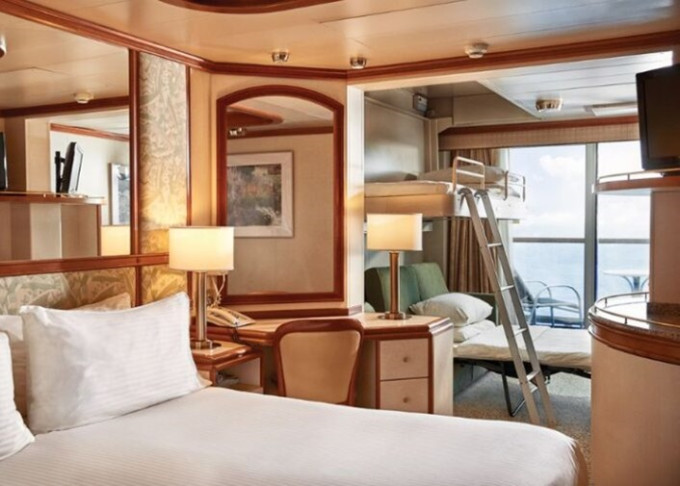 S6 - Vista Suite s balkónom 45 m² (vrátane balkóna). Max 3-4 osoby (gauč + horné lôžko). Výhody Suite. 11 924 € 5 962 € za osobu