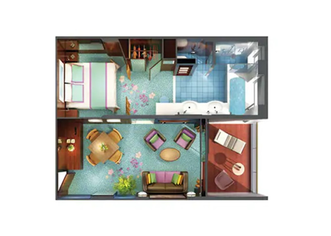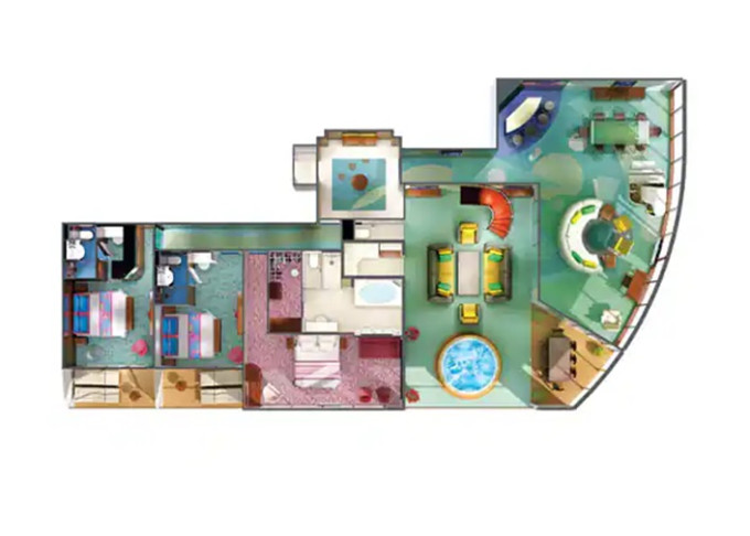 S4 - Deluxe Family Suite - 2 spálne 50 m² / balkón 5 m². Výhody Suite. 11. paluba - vpredu, stred. Max 6 osôb. 6 004 € 3 002 € za osobu
