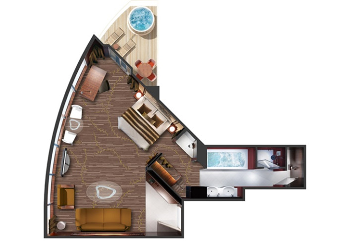 H3 - The Haven Deluxe Owner's Suite 76 m² / balkón 14 m². 10. paluba - vpredu, centrálne. Max 4 osoby. Výhody The Haven. 4 826 € 2 413 € za osobu