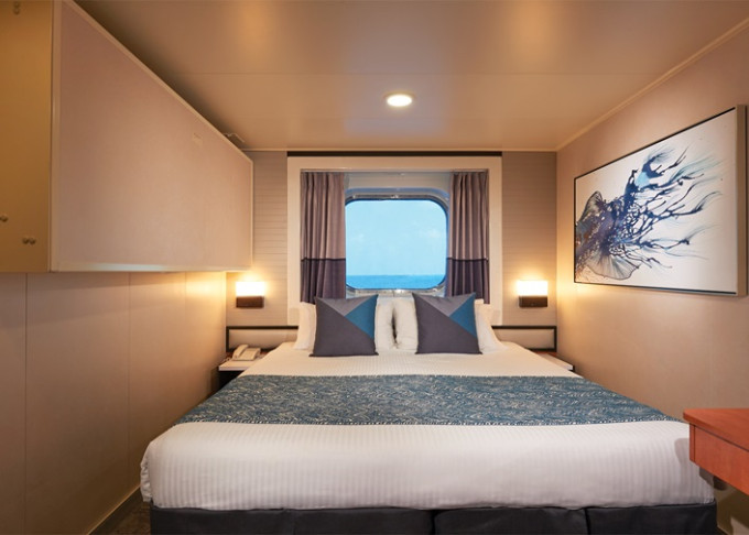 OK - Vonkajšia kajuta / obmedzený výhľad 14-17 m². Neotvárateľné okno s obmedzeným výhľadom. 8. paluba - stred. Max 2-4 osoby. 1 402 € 701 € za osobu