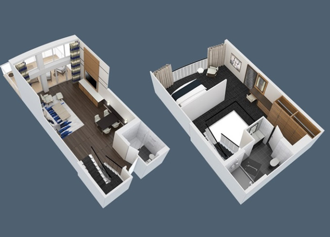 | OL - Owner Loft Suite s balkónom 90 m² + balkón 46 m². 2-podlažný apartmán. 8. paluba. Max 4 osoby. Výhody Royal Suite Star Class. | 6 819 € 2 273 € za osobu |