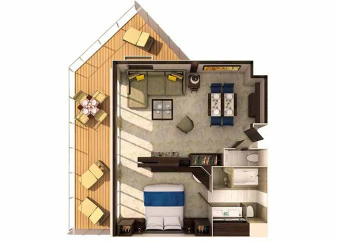 | J4 - Junior Suite s balkónom 25 m² + balkón 15 m². 6/7/11. až 13. paluba. Max 4 osoby. Výhody Royal Suite Sea Class. | 3 039 € 1 013 € za osobu |