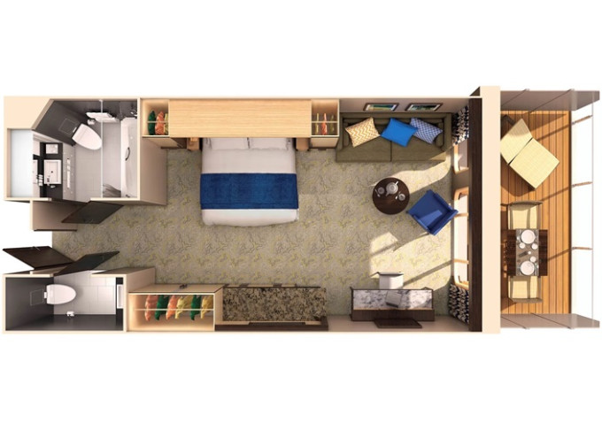 | J1 - Junior Suite s veľkým balkónom 25,5 m² + balkón 15 m². Max 2-4 osoby. Výhody Royal Suite Sea Class. | 2 466 € 2 466 € za osobu |