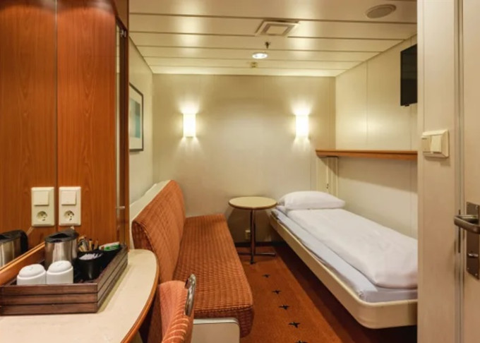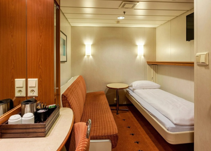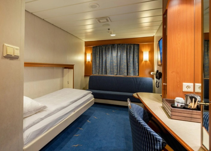 Kajuty na 7. a 8. palube, s 2 lôžkami spojiteľnými do manželskej postele; varnou kanvicou a TV.