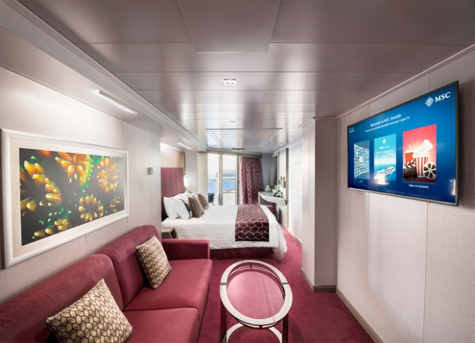 | YC1 - Yacht Club Deluxe Suite 25 m² + balkón 8 m². Spálňa s obývacou časťou, šatník. Max 5 osôb. 16-18. paluba. Cenový model MSC Yacht Club. | 8 823 € 2 941 € za osobu |