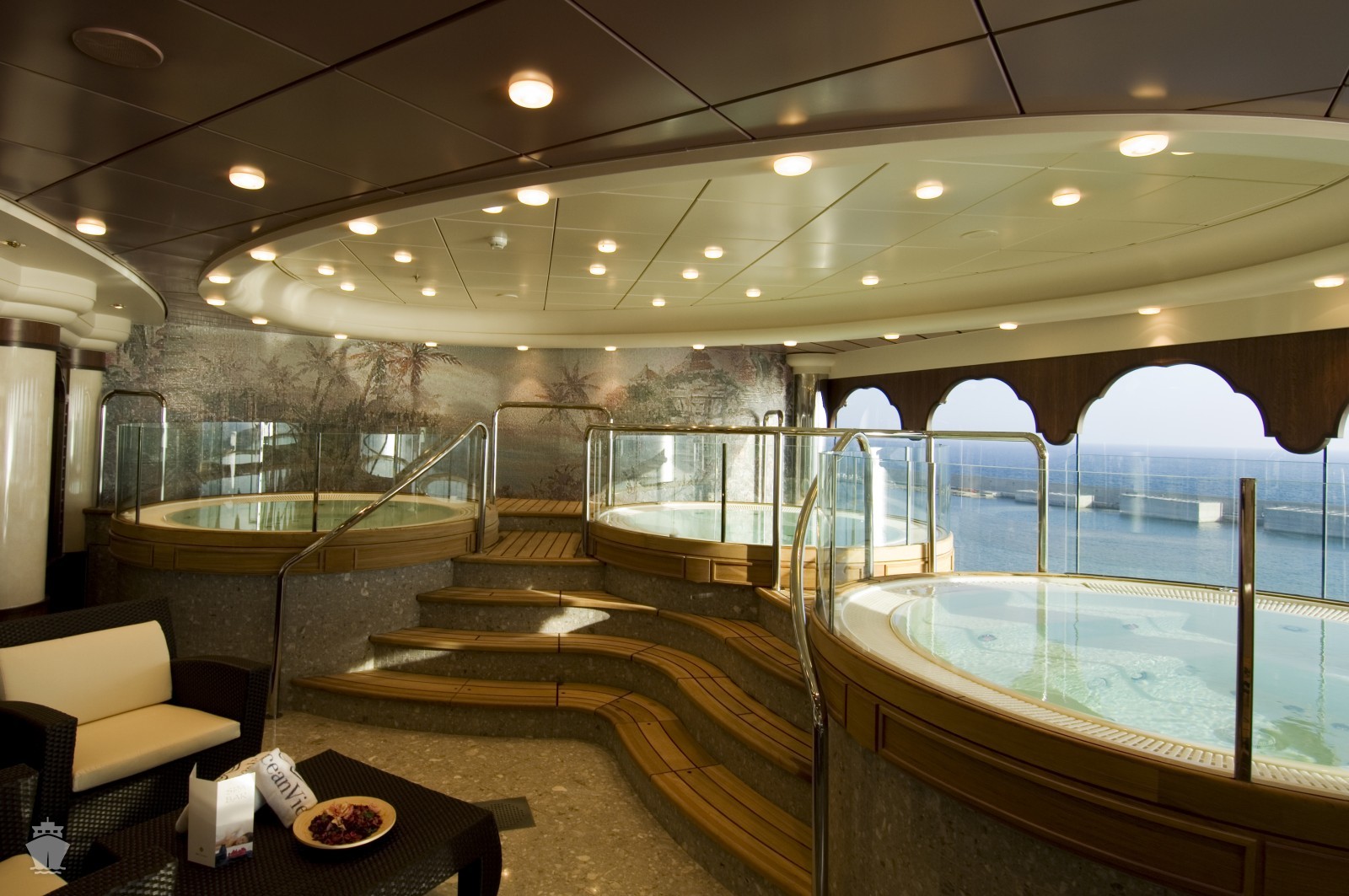 - Používanie zariadení lode: bazény, vírivky a lehátka, plážové osušky, fitnescentrum ...
