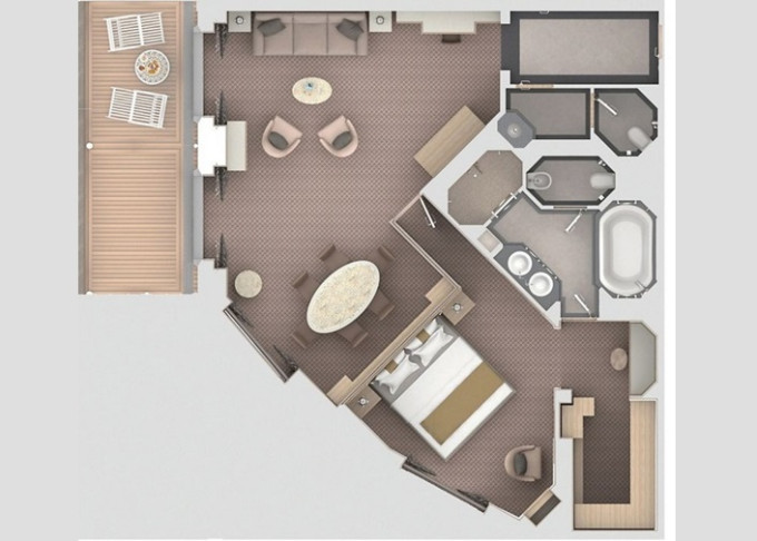 O1 - Owner's Suite 1 88 - 98 m² (vrátane balkóna 12 m²). 9. paluba - stred. Max 3 osoby. 43 400 € 21 700 € za osobu