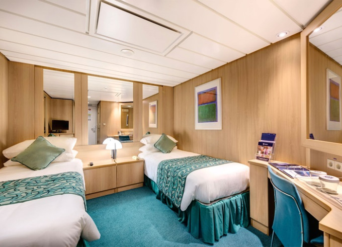 Vnútorná: 13m², kajuta s manželskou posteľou (na požiadanie 2 oddelené postele) a 1-2 vyklápacie horné lôžka. Klimatizácia, kúpeľňa so sprchou, toaletný stolík, skriňa, TV, minibar, sejf, telefón, sušič na vlasy. Internetové pripojenie (za poplatok).