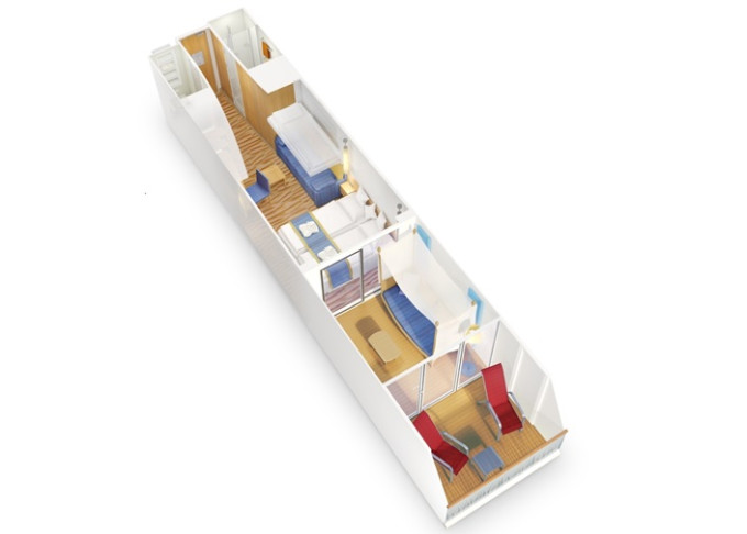 VG - Kajuta s verandou PREMIUM od 16 m² + balkón 6 m². 9. až 14. paluba. Max 4 osoby. Cenový model Premium. 6 410 € 3 205 € za osobu